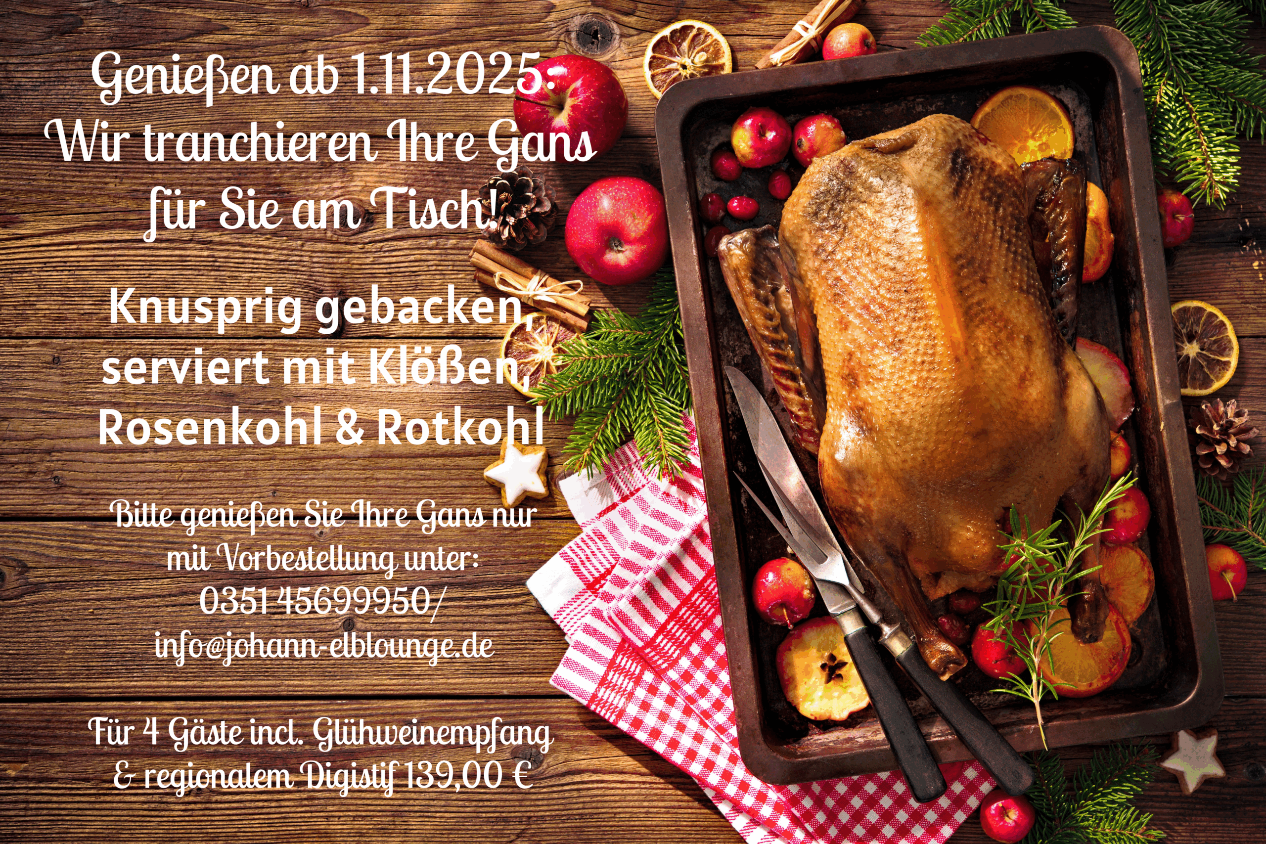 Ab 1.11. Knusprige Gans frisch am Tisch tranchiert – weitere Infos hier